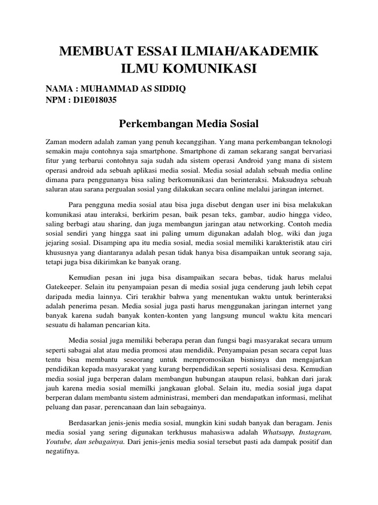 Selama 24 jam non stop pengguna dapat mengakses media sosial dengan bantuan internet. Artikel islami bahasa dan sastra indonesia bloging dan adsense cara dan syarat membuat kk ktp akta dll catatan guru catatan guru bahasa indonesia cerpen contoh pidato untuk bahan ajar berbicara contoh puisi. Beragam ⏩contoh essay pendidikan kesehatan lingkungan sosial budaya ekonomi ⏩cara membuatnya essai yang baik dosenppkn.com. Media sosial menjadi sebuah platform dengan berbagai macam kegiatan yang dapat kamu lakukan di sana. Esai ini merupakan tulisan dari hasil pengabdian masyarakat di rumah baca.